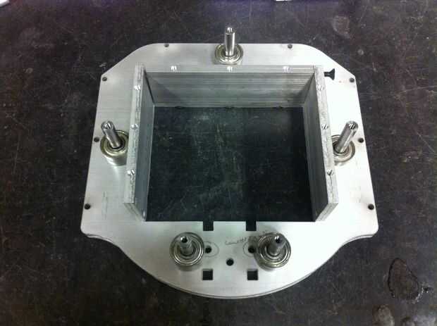 Similar a las barras de acero de mecanizado, había mecanizado a 15 separadores de aluminio de una acción de barra de aluminio de 1/2" y había aburrido a un diámetro interno de 0,136". Estos espaciadores separan los cojinetes, que obtenido VXB, por lo que encajan en sus temas respectivos en el borde. Los espaciadores también mantienen la rueda de desplazamiento lado a lado dentro de la cubierta de marco de aluminio.