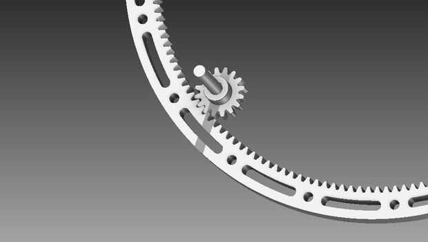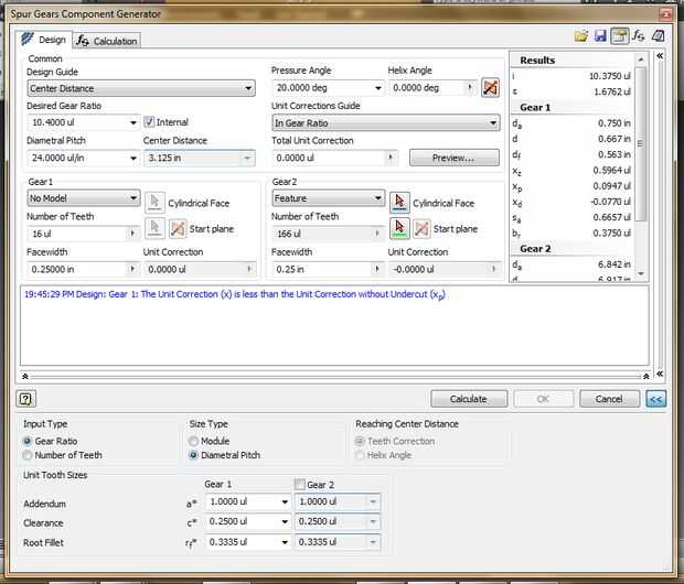 El engranaje de anillo es probablemente la pieza más singular y más difícil de este proyecto. Usé el generador de engranajes de Autodesk (en modo de conjunto) para el engranaje de anillo de diseño. Los valores importantes en el generador de engranajes son la relación de transmisión deseada, diametrales de la echada, distancia del centro y número de dientes. Primero encontré un engranaje de estímulo de SDP-SI (acción conducir productos/Sterling Instruments) con 16 dientes y un diametro de 24 ul/pulg. Esto ayudó a limitar las variables de una desmultiplicación 10.375 con 166 dientes de la corona dentada. Muchos sitios web como instrumentos de Sterling y McMaster tienen archivos de CAD junto con sus engranajes y otras piezas trabajadas a máquina, que pueden ser una gran ayuda en el diseño de su vehículo.