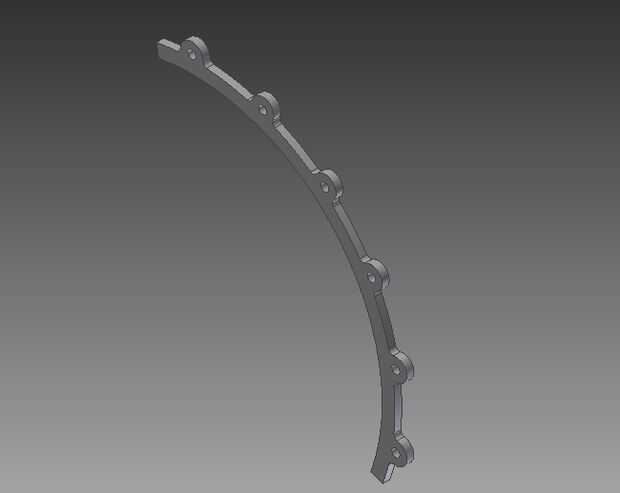 El borde se compone de una combinación de piezas de aluminio capas juntas. El engranaje de anillo y teniendo las pistas son mas 1/4" espesor 8" diámetro anillos. se insertan cuñas de 1/32" con las pistas de rodamiento para los cojinetes gruesos de 7 mm en la ranura. El resto de la rueda se compone de 1/8 anillos de aluminio cortados en tercios. Constituyen la mayoría de la composición de la rueda, ya que pueden ser firmemente embalados juntos en una placa de 6" de ancho y cortar a granel.