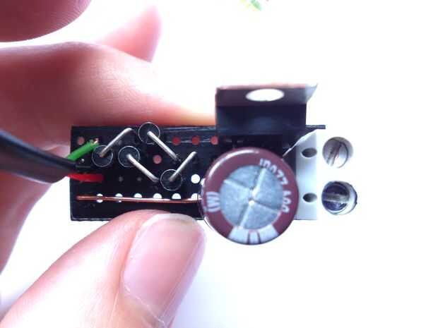 Cuando se agrega el capacitor debe doblar las piernas como en la foto se muestra, así cabrá bien en el tablero, también Recuerde tener en cuenta la polaridad.