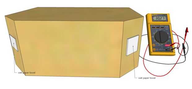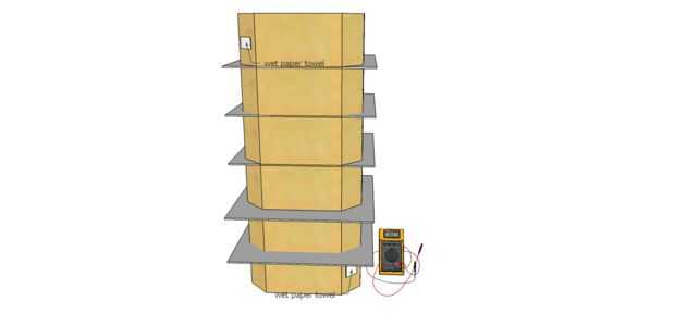 Rocíe 2 manchas en el muro de contención bloque o bloque de cemento en lados opuestos, usando la toalla de papel húmeda como un punto de contacto el voltaje que está disponible. Antes que decir ' sí. derecho ' a probar que!