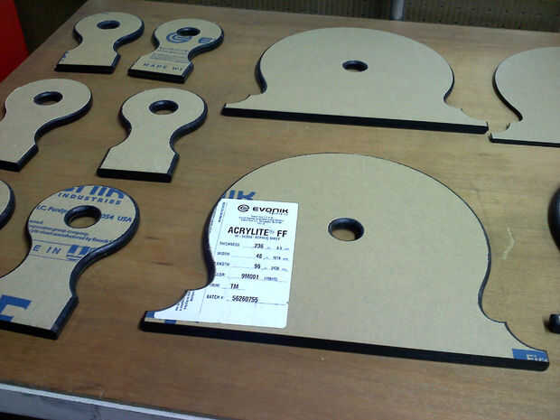 A continuación, intercala las piezas de acrílico con cinta de doble palo y redondeados los bordes con un router. Luego usé un pulidor plástico para llevarlos a un polaco. Nota: Es importante dejar el papel en durante estos procesos para proteger la superficie. Perforado y había grabado los orificios para la fijación de las placas de inductor y cepillos posteriores en el paso siguiente. Nota: Debe usar nylon u otros tornillos plásticos para esto mantener cargos de pasar al otro lado del acrílico.