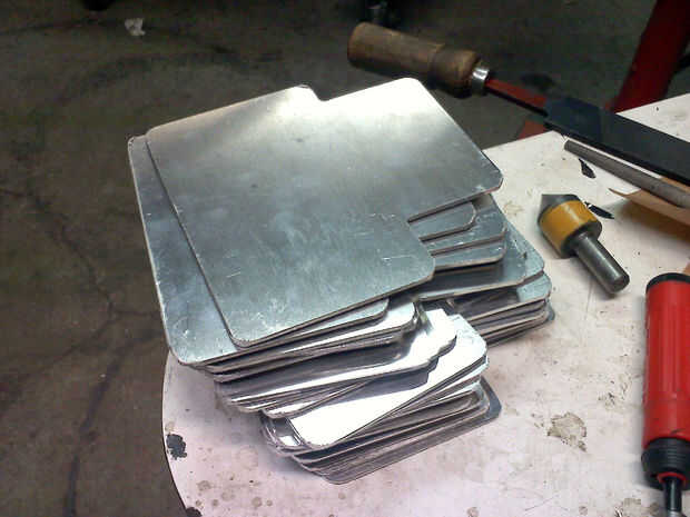 Las placas colectoras/inductor: I corte las partes de la hoja de una sierra de mesa con una hoja para aluminio, redondea las esquinas en una lijadora de banda, perforar los agujeros de montaje, les dio un acabado con una lijadora oscilante y entonces les estas en un doblador de dedo.