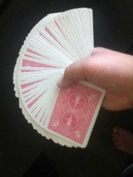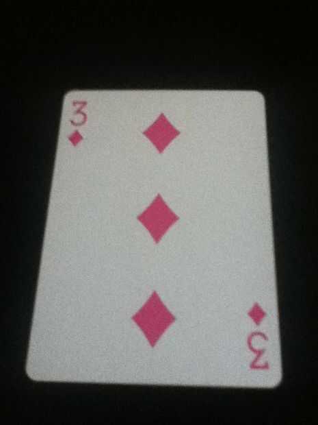 Empezar por aventar hacia fuera las cartas y Dile a tu pareja a elegir una tarjeta y Dile que lo mira! En este caso nuestro socio eligió el 3 de diamantes