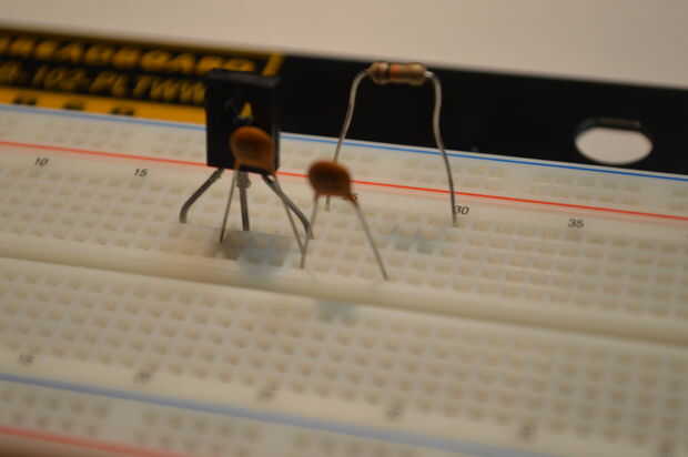 Coloque los dos condensadores de 470pF en el protoboard como se muestra.
