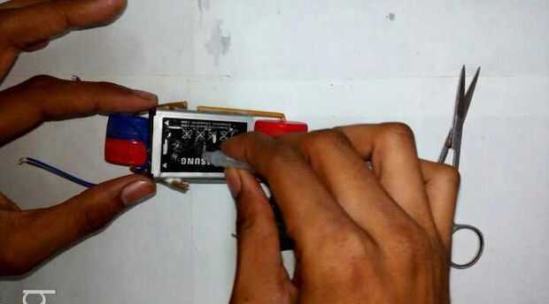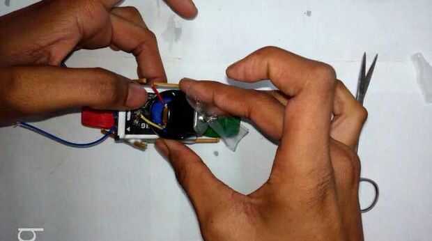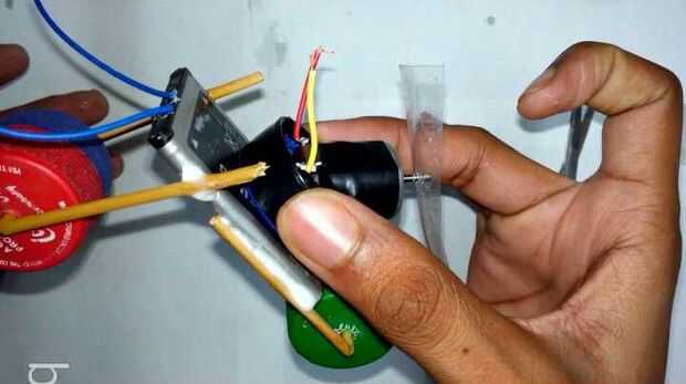 Uso el pegamento se aplica sobre la superficie de la batería y pegar el motor sobre él.