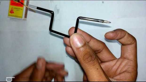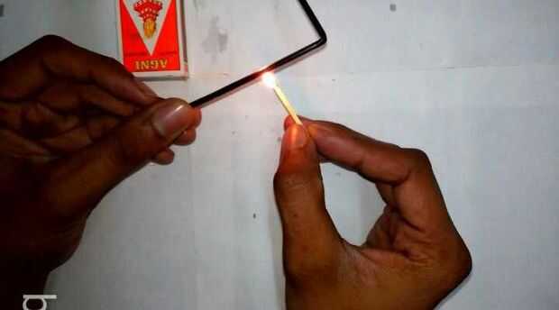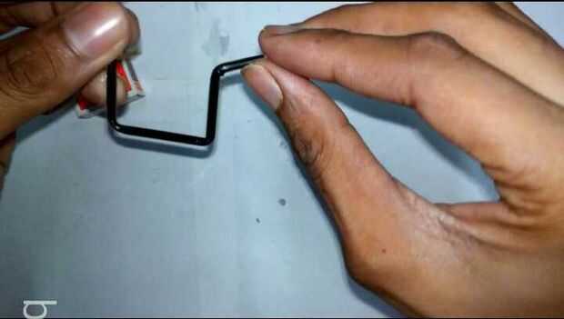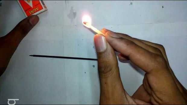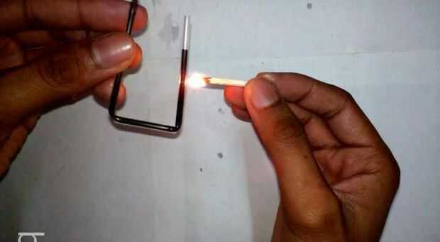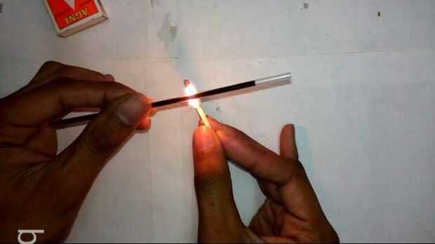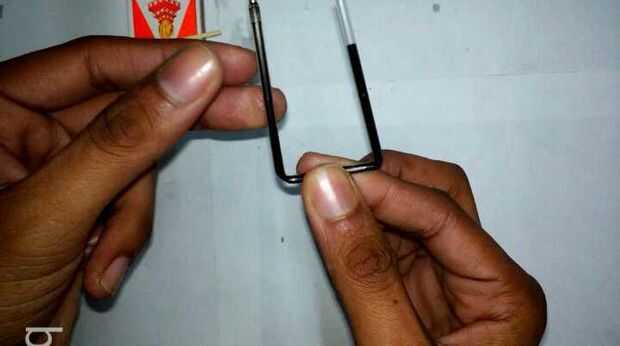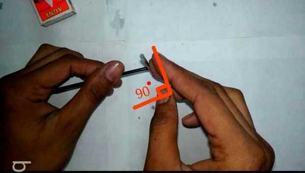 Utilizar el fósforo y disparar y aplican al repuesio de la pluma con un boquete de aire y mantener el fósforo alrededor de 4 segundos luego quitar el fósforo y doblar el repuesio de la pluma con un grado de 90 angel y aplicar este proceso en toda la sección del repuesio de la pluma para hacer la forma del mango.