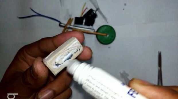 Pegamento el borrador y el stick por encima del motor y luego uso de pegamento une el asa en la parte delantera. Aquí borrador apoyar el mango y hacer más fácil para la manija del palillo en el lugar correcto.