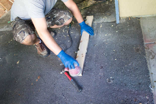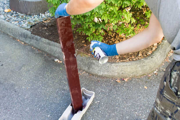Cortamos el montaje a medida de recortar el lado izquierdo en el perno y el otro lado, sobre un pie del perno. Entonces nos lijar las superficies y los bordes y aerosol pintado. Nos queda el soporte hacia fuera en el sol y trabajó en las baterías mientras tanto.