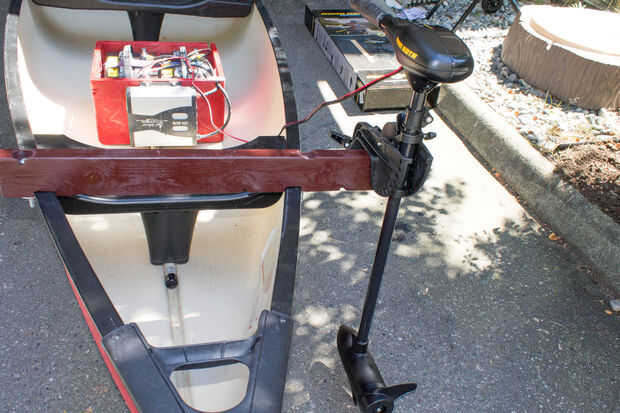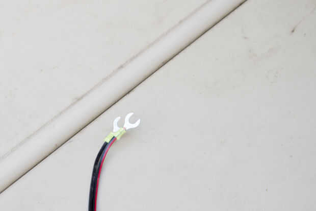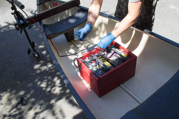 Las baterías ya fueron conectadas en paralelo por lo que todo lo que tuvimos que hacer fue Conecte los cables del motor de trolling a los terminales positivo y negativo.