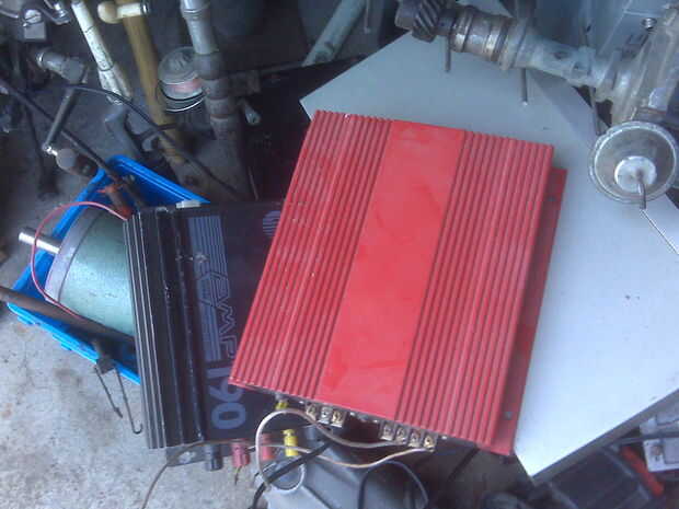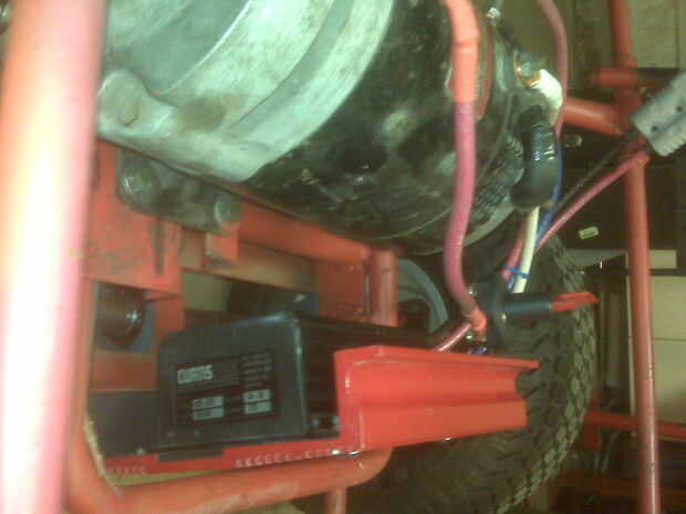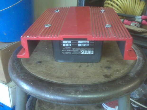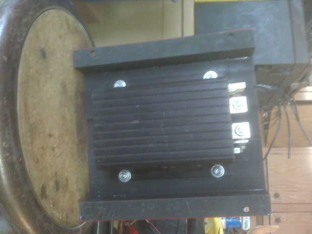 Quería buen control así que utilicé un regulador de Curtis de un montacargas. Había montado en una cáscara de amplificador de coche viejo como un disipador de calor.