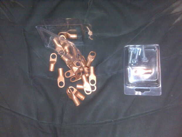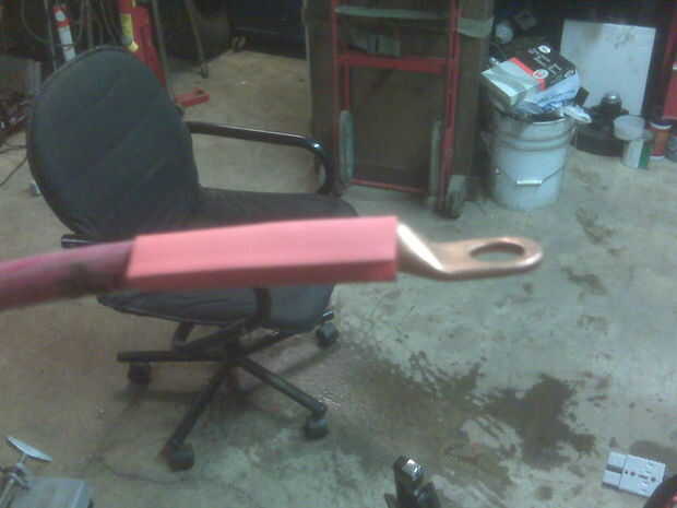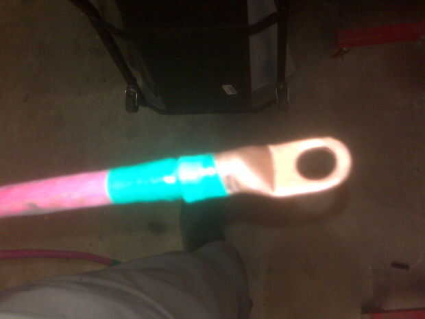 Por suerte tuve un montón de alambre de desecho #2 de una UPS vieja. Utilizar las herramientas de prensado estilo martillo para unir las zapatas. Me gusta envolver el engarzado terminado con cinta. No importa qué color cinta desde la luego tapa con calor tubería del encogimiento. Hace los extremos ver realmente. Incluso mejor que los cables de la batería "Profesionalmente" hecho miré. He usado de buena calidad batería desconecta para minimizar las pérdidas en los cables corriente alta.