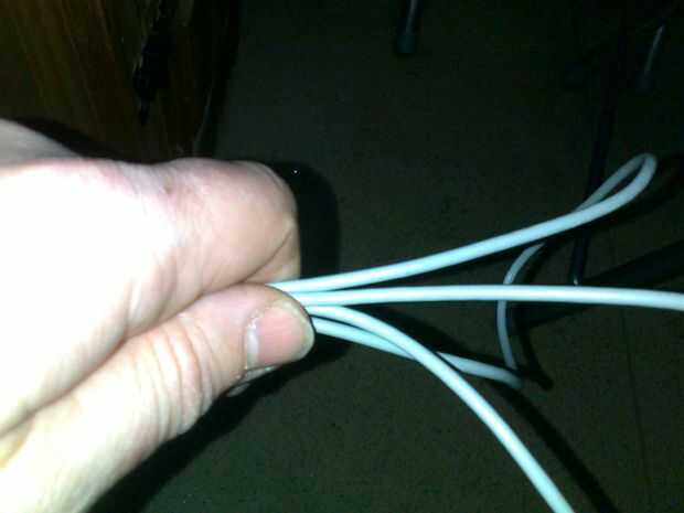 Retención de los cables del gancho agarrador y recoger en una carrera - tomar su material plástico papelera todo bolsa y escupir en un larga duración - en varios cables en una espiral superpuesta y luego use la pistola para sellar el lote.