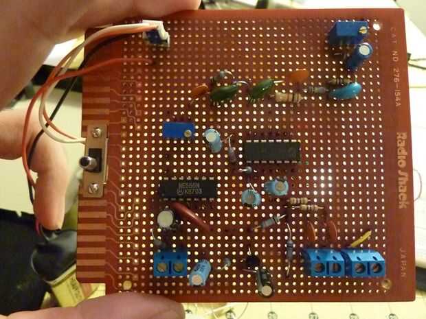 Organizar los componentes en la placa de circuito y soldar en su lugar Fig. 1 y 2. No recorte las puntas de sus componentes menos que 1/2" o tendrán dificultades para realizar las conexiones más adelante. Puede ser útil imprimir otra copia del esquema y marque los componentes como se instala.
