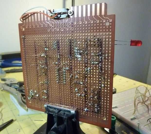 Nota: Si recibe una placa de circuito con barras y plan con cuidado donde se colocan los componentes usted puede drásticamente reduzca el número de conexiones que tendrá que hacer más adelante.