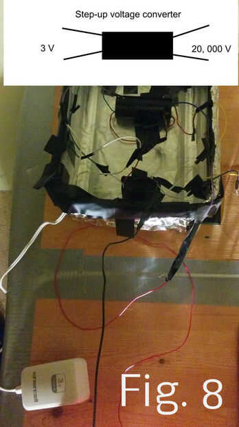 En la caja de metal que actúa como una jaula de Faraday, tengo 2 fuentes de Step-up (uno de 20, 000V y otro de 7, 000 V) que puede ser utilizado. Por esta razón puedes ver los cables extras.