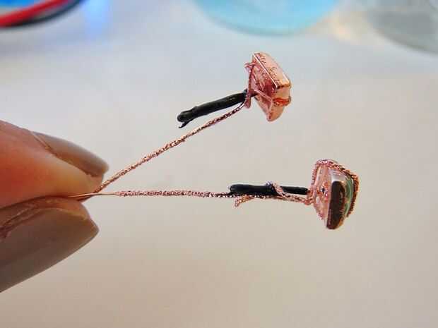 Ahora ha pasado una hora desde los pendientes han sido Electroformado. Una buena manera de medir cuánto cobre se ha depositado sobre la pieza es mirar el alambre de cobre fino.
