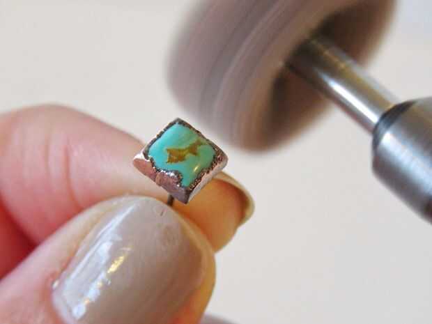 Estoy usando una Dremel con un accesorio de pulir abrasivo. Si no tienes una Dremel puede utilizar papel de lija con un grano fino. Me gustaría ir sobre las áreas de cobre para darle un aspecto más crudo y dimensional.