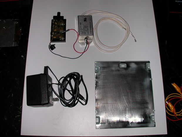 -Fuente de alimentación-utilicé un 2, 000V fuente de alimentación de electrónica todos. Esto era apenas adecuado para este propósito, así que un voltaje más alto-uno. En mi caso tuve que conectar una fuente de alimentación del 12VDC 1A pared verruga, ya que requiere entrada de 12V. Básicamente, usted necesita algo que le dará una chispa de tamaño decente. (ver imagen 2 abajo)