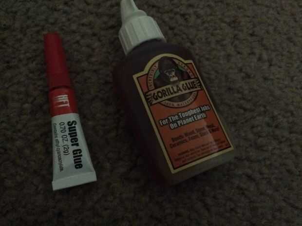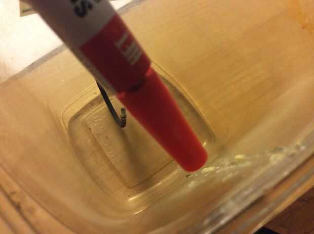 Now it is time for you to glue the electrode to the water container. Note: the reason why you need super glue and gorilla glue is because it will be underwater. Now, wipe the surfaces clean and then put a little gorilla glue onto the container in respect or regard to the shape of the electrode. Use the electrode to stop the gorilla glue from running downward too much. After that put a little super glue on the electrode. Then. put the electrode on the container. Now wait a few moments then add a little more super glue. Wait approx. one minute ten seconds. Now let it sit for three to six hours.