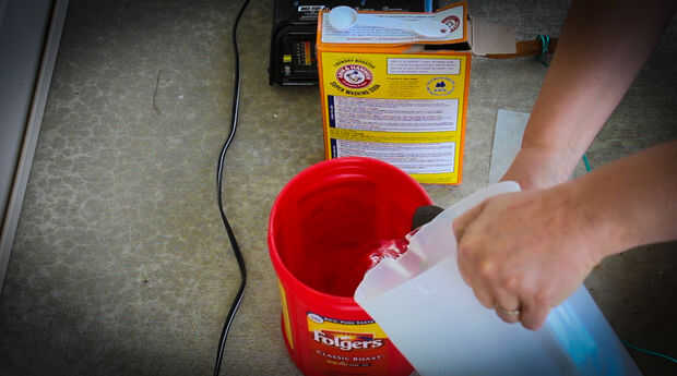 Llene el recipiente con agua. Se trata de pequeña escala (48oz contenedor) así que el contenido de soda de lavado es bastante pequeño, así. Usando las referencias de las referencias, he decidido 2 cucharaditas haría el trabajo.