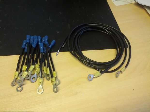 Esta es la parte final de la construcción, corte el cable 12AWG en 15 tiras de 100mm y cortar el resto en media tira de unos 8mm de cada extremo de las longitudes de cable y presión un anillo terminal en un extremo de todas las longitudes del cable y en el otro extremo de los cables cortos prensar un terminal de la bandera y en el otro extremo de los cables de larga tira de unos 15mm y puede lata esto usando un soldadura ion pero esto no es necesario. Penultimately en cada una de las lengüetas de los electrodos, uno de los cortos cables utilizando los terminales de la bandera azul. Finalmente con M6 pernos conectan los terminales M7 juntos a cada lado y uno de los cables más largos a cada lado.