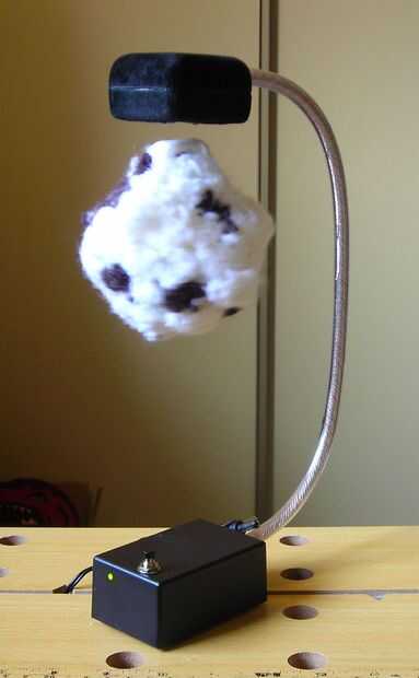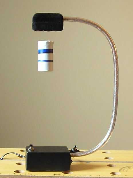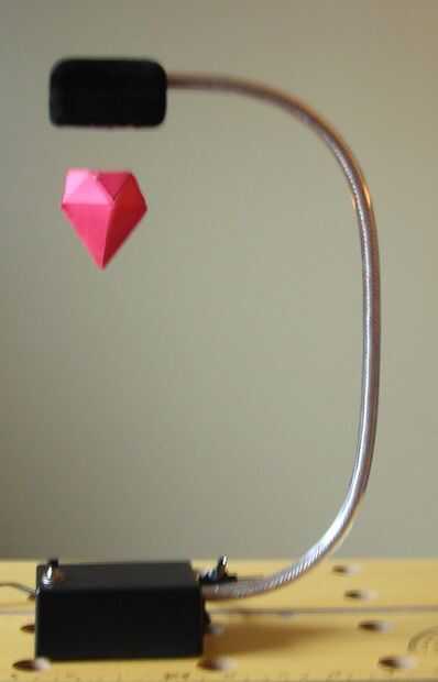 A continuación, manténgalo justo debajo de donde se establece la altura de la bodega, por lo que el LED se enciende. Reténgalo ahí hasta que simplemente flota fuera de tu mano. Esto sucede porque el microcontrolador lentamente ajusta la altura de la bodega, a donde los electroimanes tienen suficiente poder para controlar el objeto.