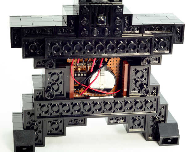 La "tapa" es una placa LEGO plana 4 x 10 con placas de 1 x 1 en la esquina: esto es fácil de quitar la tapa de la pila, mientras que mantener segura para la espalda. Cuando la estrella esté completa, puede colocar las placas planas en la parte posterior, y el modelo final debe ser funcional y autónomo. Si nada viene suelta y Mort alrededor, siempre quitarse la parte de atrás y examina lo que lo hice mal: tal vez hiciste la placa de circuito muy pequeño, que no está sostenido firmemente en su lugar bastante, en el cual recomendaría relleno el interior con varias placas y ladrillos para sostener los cables de circuito hacia abajo perfectamente.
