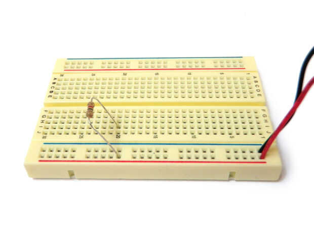Usted puede consultar el código de color de un resistor de 1K usando la calculadora gráfica resistencia. Además, recuerde que el LED debe conectarse de la manera correcta (sugerencia - la pata larga va hacia el lado positivo del circuito).