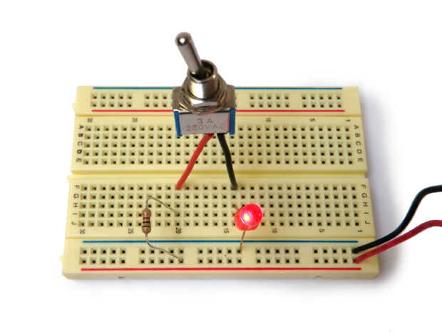 Si usted decide utilizar el interruptor, abrir y cerrar para ver qué sucede cuando usted hace y rompe el circuito.