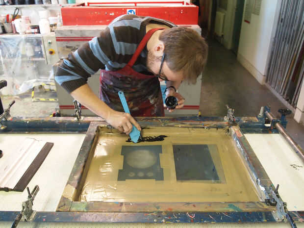 Impresión de la pantalla con desnudo conductor es un poco más complicada ya que tiende a secar rápidamente en la pantalla. Para conseguir alrededor de esto con que me pareció mejor diluir desnudo conductivos aproximadamente 1 parte de agua 10 partes conductoras desnudas. Esto hace que todo el proceso un infierno de mucho menos estresante. Cuando se trata de seleccionar una buena pantalla para la tinta, te recomiendo que uses una pantalla textil con una malla de alrededor 90 t.