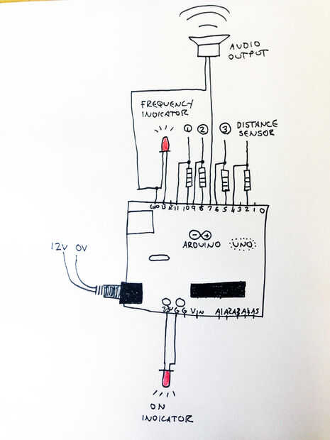 Decidí que sería bueno tener algunos LED en el dispositivo para que pueda ver lo que estaba sucediendo. Alambré hasta una potencia de LED entre 3,3 v y tierra en el Arduino y un indicador frecuencia entre pin 13 y la tierra en el Arduino.