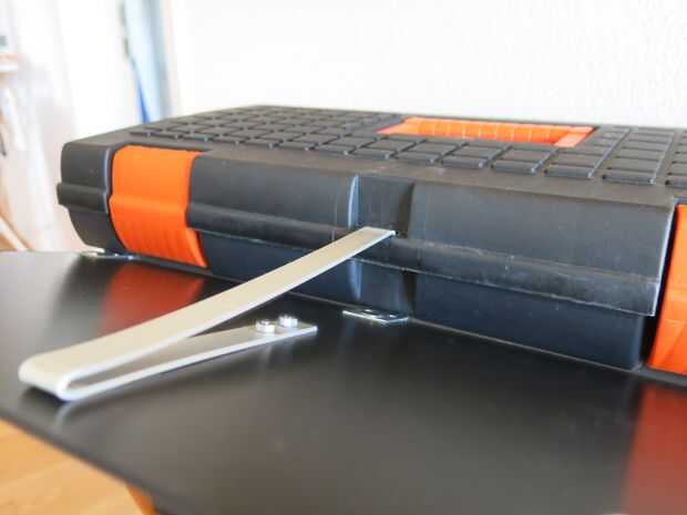 Doblar y apretar una barra de aluminio, que servirá como un soporte para mantener la placa en posición abierta, utilizando los agujeros del candado.