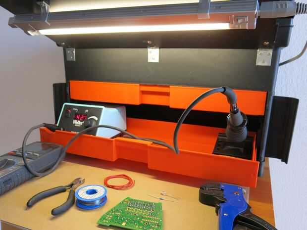 Necesito un organizador de la electrónica. No, sin embargo, necesito algo cojo o grandes o complicadas. Por lo tanto, me hice uno.Con este carrito de dispositivo, experimentó con algunos materiales nuevos (para mí) y estoy contento que hice. Llegué a