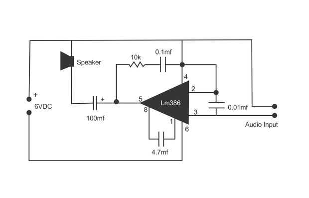 El conjunto de amplificador tiene circuito amplificador simple; el circuito es alimentado por un IC LM386.