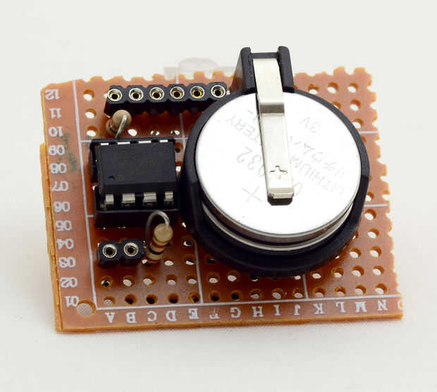 Se refieren a mi diagrama de la placa anterior. He decidido no hacer un diagrama de Fritzing es difícil transmitir el método de tener los LEDs conectados a los pines de encabezado via cable, por no hablar de cómo transmitir la cabecera hembra pernos en general (después de todo, placa del software Fritzing es básicamente una serie enorme de pines hembra encabezado, de todos modos). Dicho esto, mi protoboard el diagrama anterior es un diseño híbrido de un protoboard y un esquema, con todo lo había simplificado lo suficiente como para los aficionados, pero había detallada bastantes para experimentados constructores electrónicos. Como todos los proyectos de electrónica, siempre experimento con un protoboard primero, sólo para ver si su circuito incluso trabajará para comenzar con. Si estás satisfecho con tu protoboard, puede delimitar dónde colocar los componentes en el circuito. Hacer una prueba a un mapa donde se colocarán las piezas con las mejores opciones de ahorro de espacio; vea mi foto de un completo circuito con baterías. Antes de soldar, lugar el zócalo de 8 pines en la placa primero, luego pone en el portapilas, seguido por las resistencias (correspondiente a los respectivos pines ATtiny85), finalmente las clavijas hembra encabezado. Si su circuito de funcionamiento en seco se asemeja a mina, no dude en usar un lápiz para marcar las ubicaciones para permanentemente de la soldadura de las piezas a continuación, comenzar a calentar la plancha!