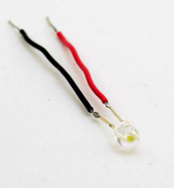 - LED 5 mm blanco (o verde color, realmente) de la setas verdes o LED rojo 5 mm para los modelos rojo. Anteriormente yo usaría sombrero de paja LED, ya que encajaría perfectamente en un agujero de LEGO Technic, pero para estas nuevas setas realmente he utilizado estándar 5mm LEDs - que requiere una fuerza para mantener en lugar del orificio, pero desde que he aprendido, en realidad permanecen en mejor y no caer. En las fotos que adjunto, he usado el sombrero de paja LED del tutorial de Starman para ahorrar tiempo, pero en estos hongos de hecho he utilizado 5 mm estándar LED--puede utilizar cualquiera que decida utilizar.