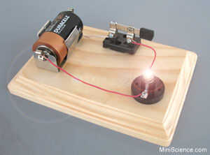 Un ejemplo de esto sería un circuito que contiene una batería de 9V como fuente, una resistencia o LED como la carga, un cable de cobre como el camino del conductor y un interruptor como un elemento de control.