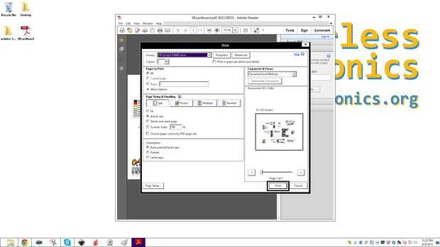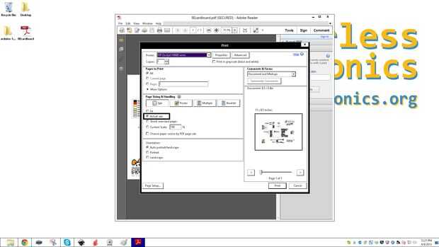 Luego seleccione Imprimir del menú archivo. Asegúrese de que selecciona tamaño real en la sección tamaño de página y la dirección.