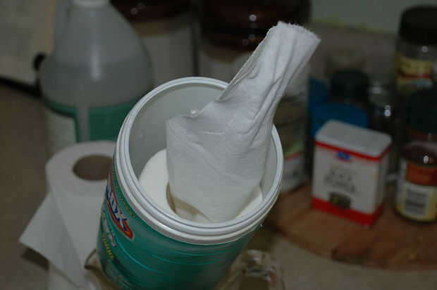 Verter la solución en el contenedor para verter sobre las toallas de papel dentro y por fuera que hacerlo agradable y se absorbe. Puede que tenga que jugar con la cantidad dependiendo de sus toallas, tenerlos demasiado mojada está bien, sólo tienes que exprimir el exceso de solución antes de usarlos. NO quiere limpiar su monitor mientras está en, y no quiere límpiela con un trapo mojado remojo. Debe estar húmedo, no empapado, así que sacar hacia fuera el exceso en el contenedor o en un fregadero.