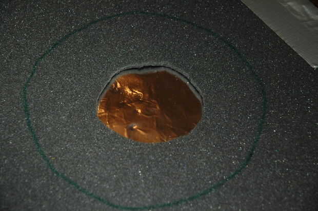 Coloque esta capa del forro del techo encima de la capa inferior del paso anterior para que las tiras de papel de aluminio pueden verse a través de los agujeros.