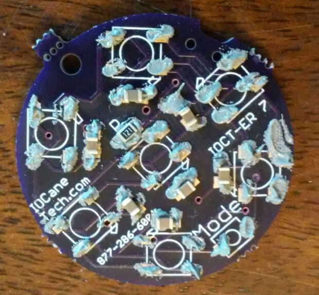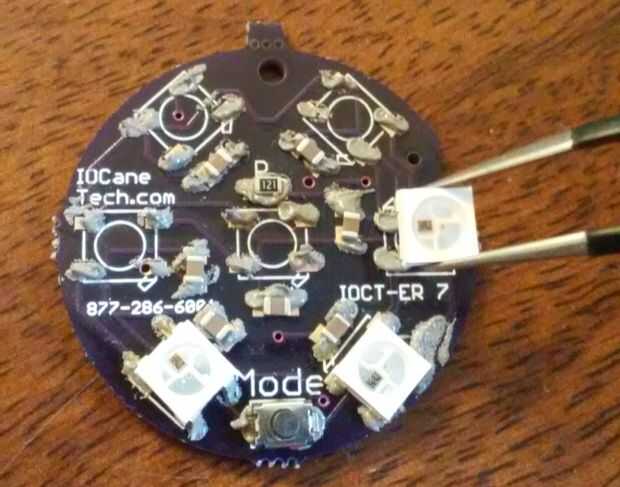 Chuletas sobre los LED son demasiado pequeños para ser visto en estas fotos, pero te aseguro que existe y alineado con las marcas de doblez en el tablero. :)