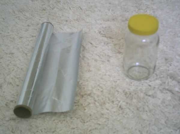 Necesita solamente un frasco de vidrio con tapa de plástico y rodillo de la hoja de aluminio.