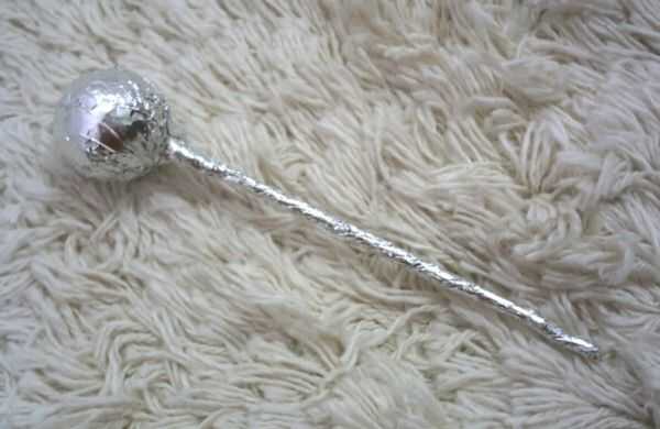 Conectar la pelota con la barra de enrolle un pedazo de papel de aluminio cubriendo la bola y torcer el fin sobre la barra.
