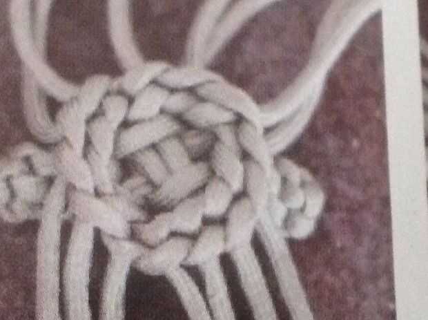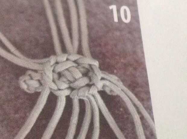 Cuando se hace la trenza redonda es como el nudo cruzado excepto con más cuerdas. Fotos de ayuda están por encima. 11 hileras de trenzas redondas hacen que el cuerpo.