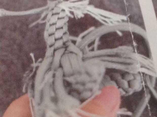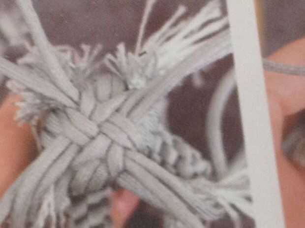 Escoge 2 cables de cada grupo hacen un nudo cruzado con estos 8 cables. Elegir 1 cuerda de cada grupo y hacer un nudo cruzado. Ahora repita 10 veces para hacer el tronco.