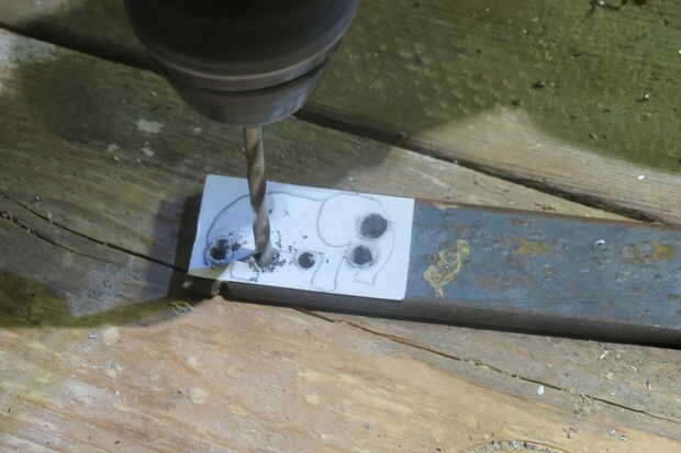 Para perforar los agujeros (obviamente) se necesita un taladro y una broca con un diámetro ligeramente más grande que un pedazo de paracord. Una prensa del taladro funcionaría mejor para perforar los agujeros, pero he conseguido con un simple taladro inalámbrico. Ayuda a añadir una pequeña cantidad de aceite para enfriar el metal y ayude a cortar más fácil así como elimina cualquier ruidos que.