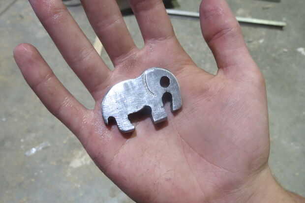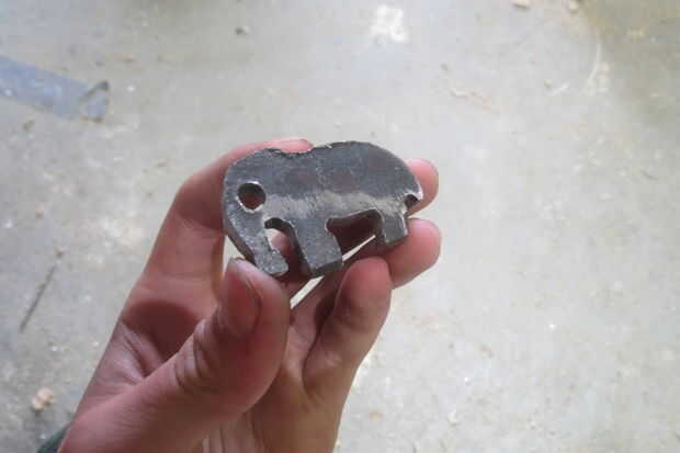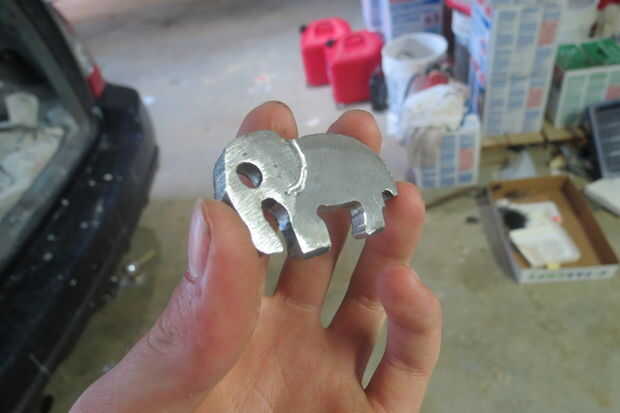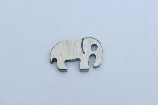 Terminada la presentación, solía una amoladora angular con una muela abrasiva suave de ambos las caras hasta que fueron brillantes. Luego, con un marcador que dibujé la forma de la oreja sobre el elefante con la