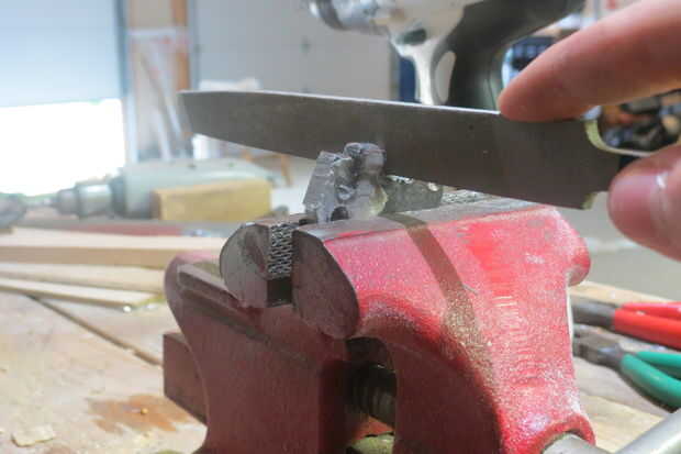Después de corte el elefante con la sierra, había muchas esquinas afiladas y rebabas. Usé una lima de metal regular y un archivo de cola de rata para modelar el cuerpo y suavizar las esquinas. Por ahora, la plantilla había caído, así que estaba trabajando principalmente en memoria.