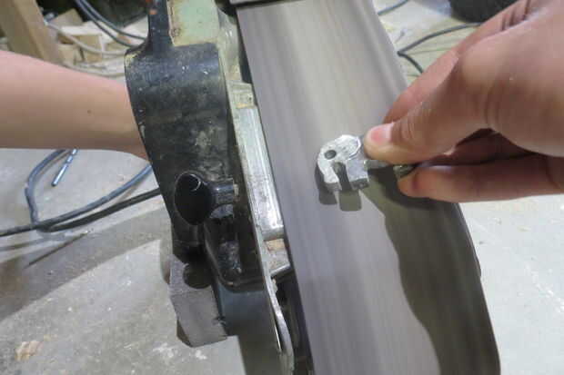 Finalmente, para completar el elefante, utiliza una lijadora de banda portátiles y volteado boca abajo para usar como una lijadora estacionaria, para quitar cualquier arañazos de la amoladora angular. Entonces trajo el elefante dentro y utiliza una pequeña cantidad de pintura negra para llenar la ranura de la oreja para que pueda ver mejor.